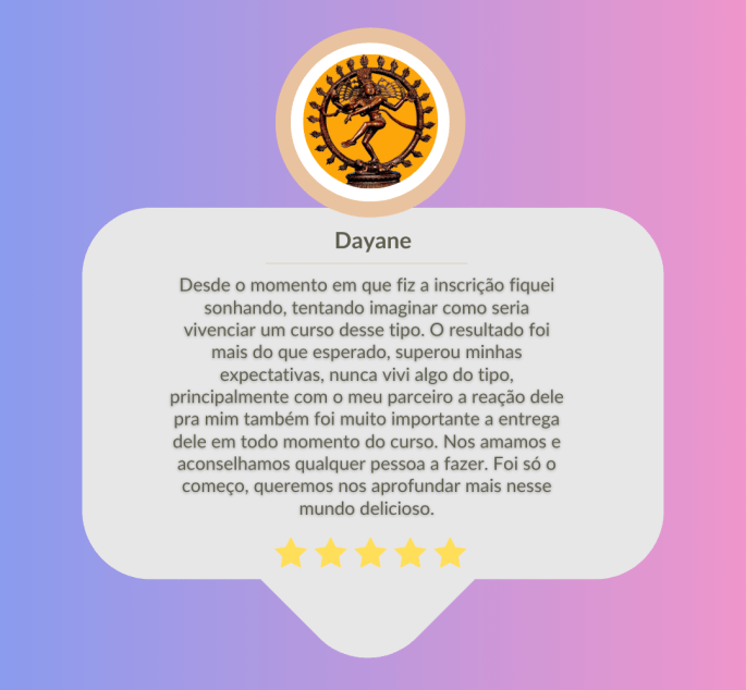 O curso vai muito além de simples técnica, trazemos ensinamentos sobre a visão tântrica do corpo, prazer, o sagrado feminino e o sagrado masculino. Há uma expansão de consciência sobre a sexualidade e relacionamentos.