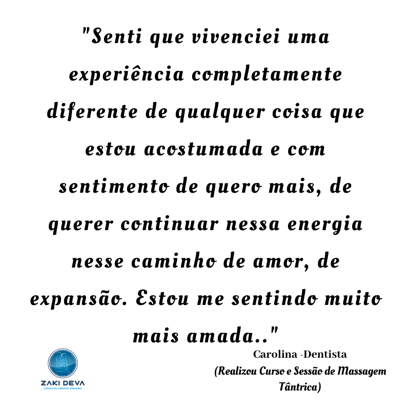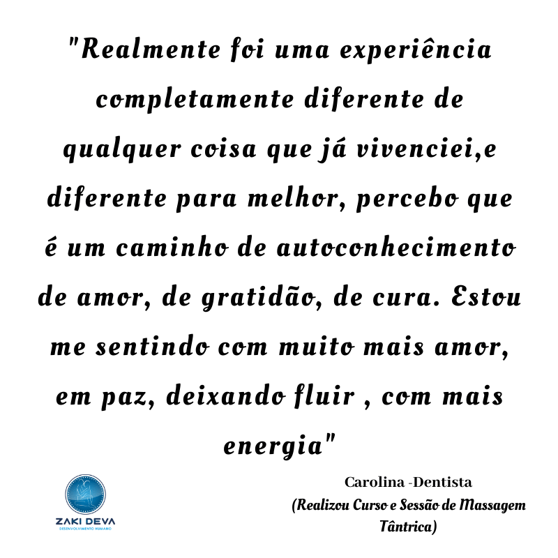 Zaki Deva desde 2013 promove experiências de Tantra, Renascimento, Terapias da Respiração, Terapêutica Tântrica, Hipnoterapia Ericksoniana, Especialização em Disfunções Sexuais, Curso Avançado de Massagem Tântrica, Meditações do Osho, Dançaterapia e Yôga. Ano à ano auxiliando grandes transformações na vida de pessoas de todo Brasil e de outras partes do mundo.
